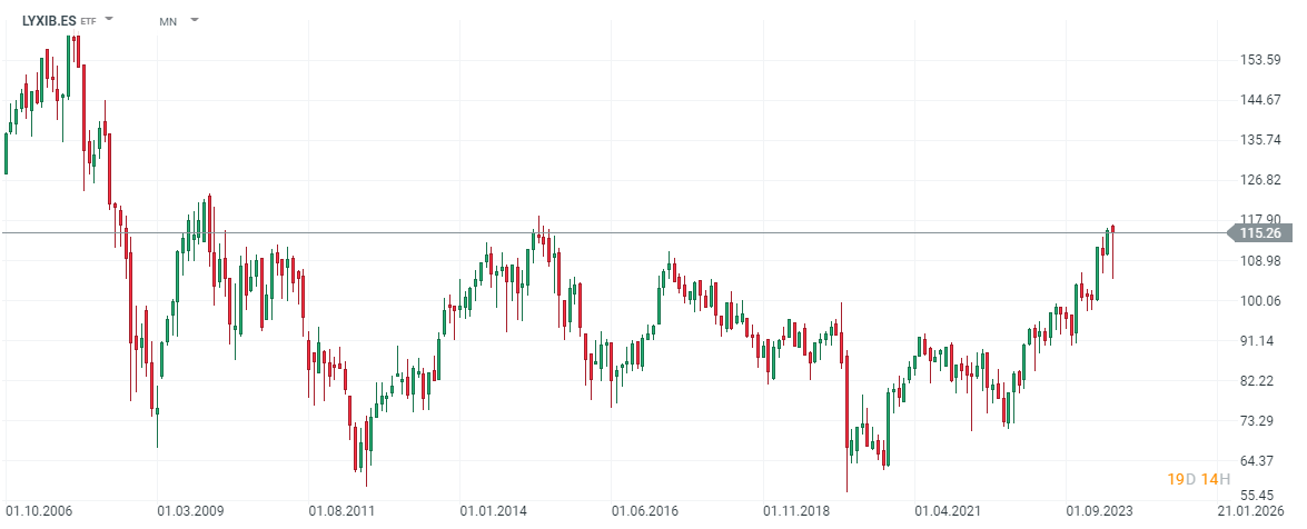 Te mostramos un ejemplo de un ETF que replica el comportamiento del Ibex 35 y que además de encontrarlo en nuestra plataforma puedes incluirlo en tu Plan de Inversión. Puedes encontrar su descripción aquí (LYXIB.ES).