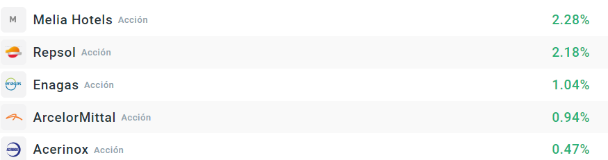 Los valores más destacados hoy son Meliá y Repsol, ambos con mucha inercia alcista. La segunda lo hace apesar de que ayer conocieramos que su producción de petróleo cayó un 3% en el primer trimestre. En el lado bajista destacamos a la banca, que frena ligeramente las subidas que acumula este año.