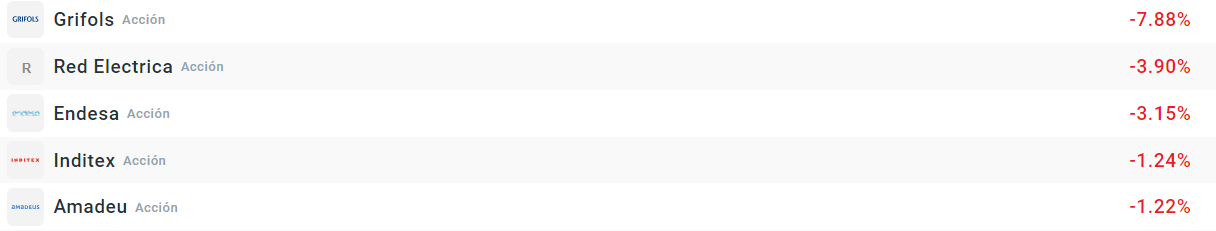 Acciones que más bajan de la bolsa española: