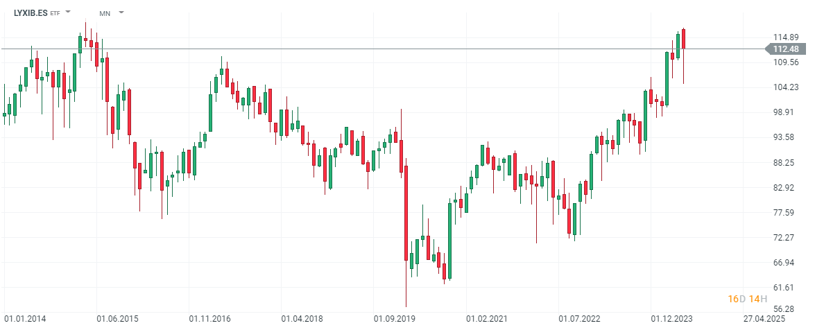Te mostramos un ejemplo de un ETF que replica el comportamiento del Ibex 35 y que además de encontrarlo en nuestra plataforma puedes incluirlo en tu Plan de Inversión. Puedes encontrar su descripción aquí (LYXIB.ES).