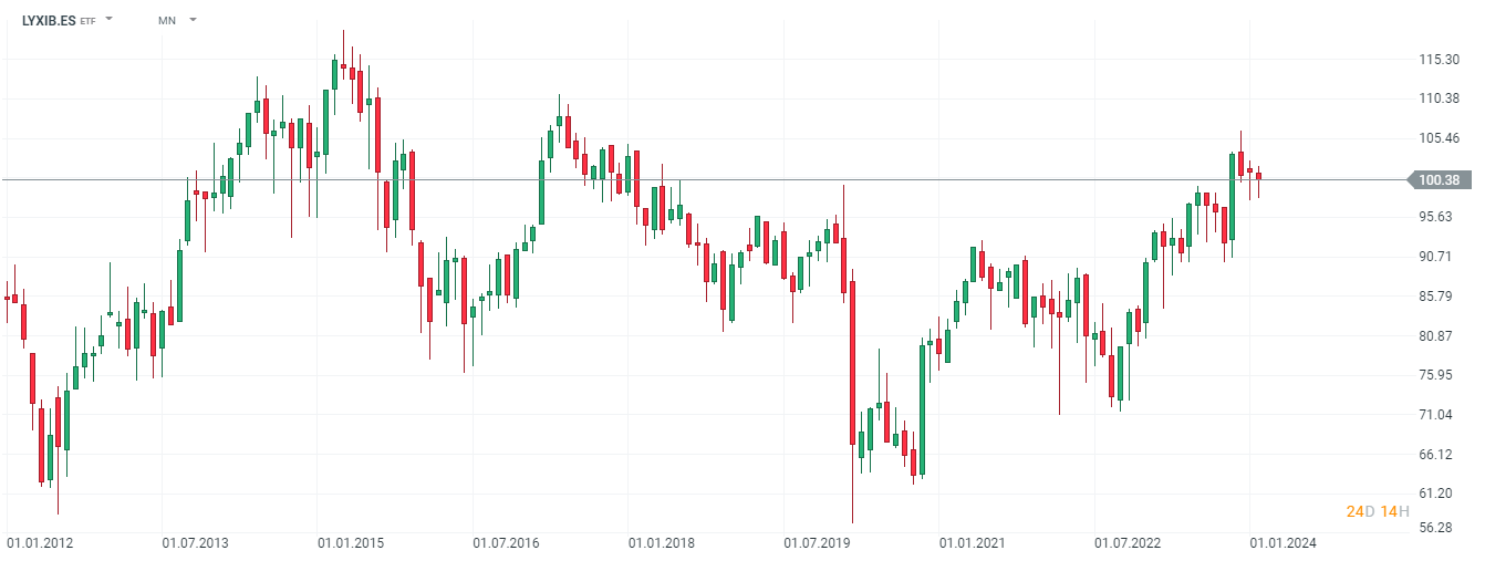 Te mostramos un ejemplo de un ETF que replica el comportamiento del Ibex 35 y que además de encontrarlo en nuestra plataforma puedes incluirlo en tu Plan de Inversión. Puedes encontrar su descripción aquí (LYXIB.ES).