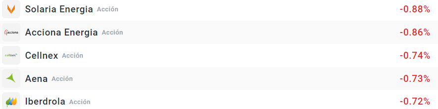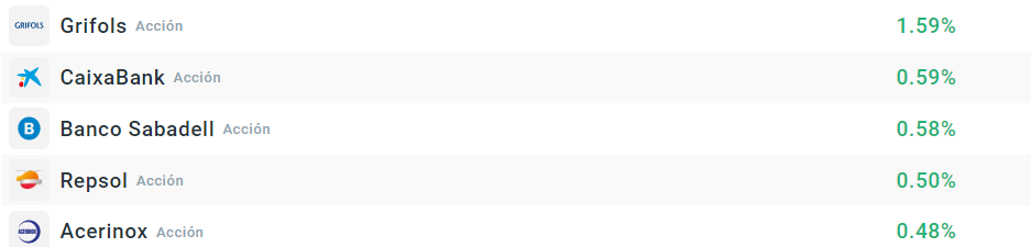 La parte alta de la tabla en la sesión de hoy vuelve a estar liderada por Grifols, que rebota con fuerza después de todo lo que ha ocurrido en este año. En los últimos 5 días sube un 12%. La banca vuelve a hacerlo bien, pero hay que destacar a Repsol, que en el último mes sube un 10%. Las energéticas vuelven a ser las peores del índice y Solaria se consolida como la peor empresa del Ibex en este 2024.