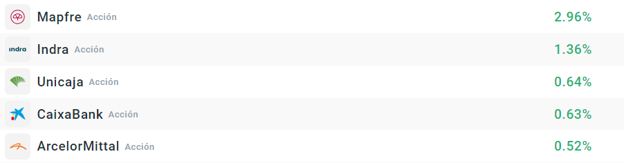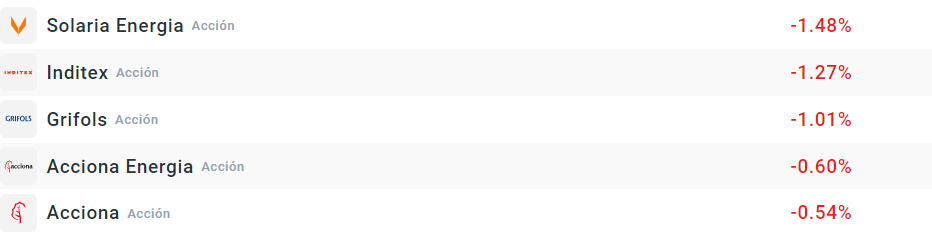 Dentro de las compañías que más suben encontramos a Mapfre, protagonista con diferencia. Le sigue Indra, pero hay que destacar de nuevo el buen comportamiento de la banca. Por la parte baja, repite de nuevo el sector de las renovables con Solaria a la cabeza, ya que los precios de la energía siguen muy bajos y probablemente afectará a la rentabilidad de sus nuevos proyectos. Inditex y Grifols también se cuelan en la lista, la primera por una corrección natural después de fuertes subidas y la segunda por el pesimismo que sigue latente.