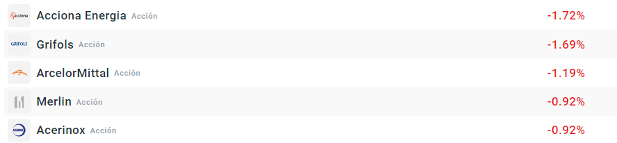 Acciones que más bajan de la bolsa española:
