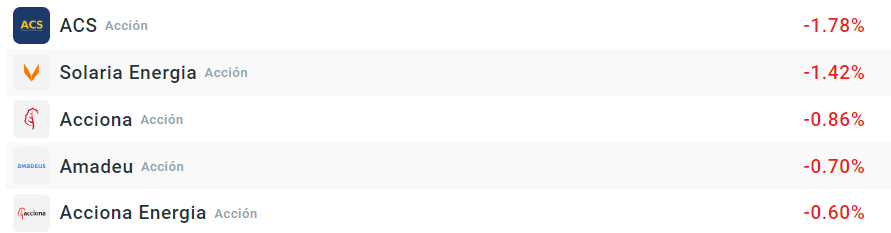 A nivel empresarial, Grifols rebota, aunque con poca fuerza para toda la caída que ha tenido en lo que va de año. CaixaBank e Inditex le siguen de cerca. Por el lado de las caídas tenemos a ACS y a Solaria. sin embargo, tenemos que destacar al sector energético, que otra vez cae en conjunto y que está sufriendo de unos precios de la luz a la baja. En el caso de Solaria se le suma la deuda, que podría afectar a su solvencia si no es capaz de solucionar sus problemas de generación de caja.