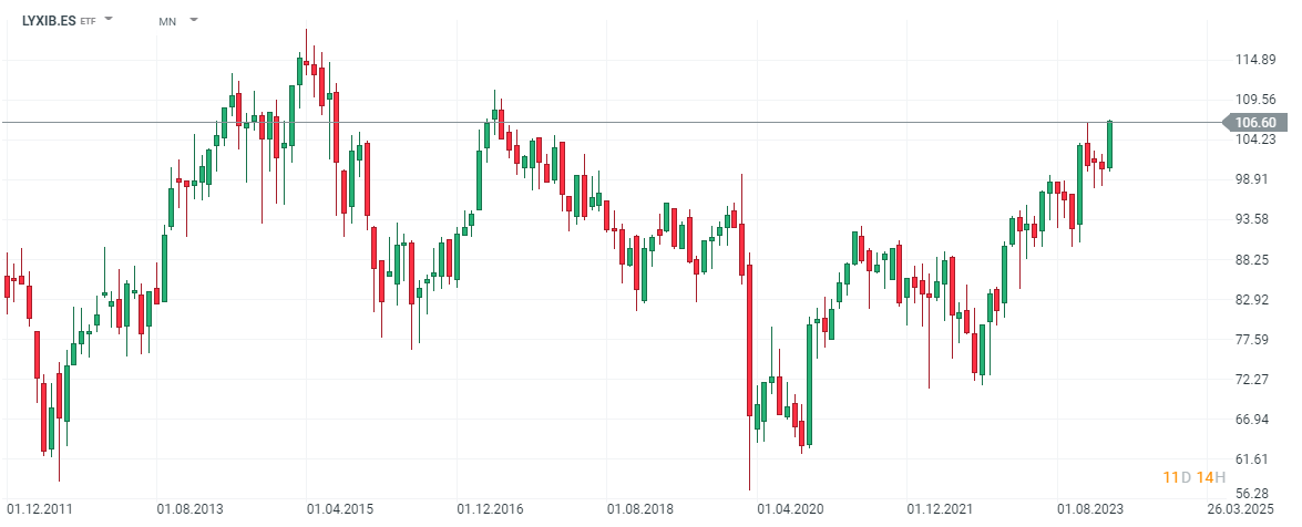 Te mostramos un ejemplo de un ETF que replica el comportamiento del Ibex 35 y que además de encontrarlo en nuestra plataforma puedes incluirlo en tu Plan de Inversión. Puedes encontrar su descripción aquí (LYXIB.ES).