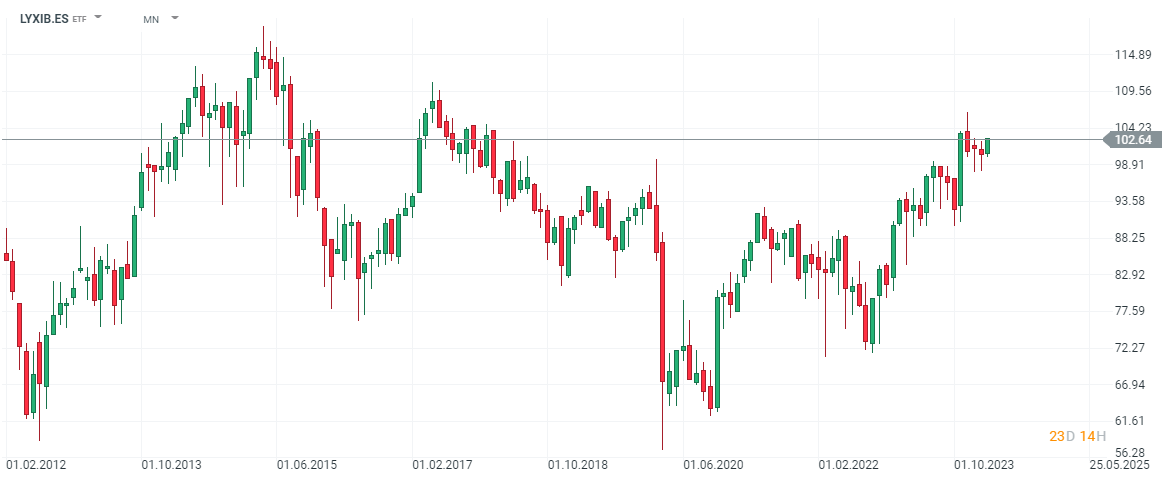 Te mostramos un ejemplo de un ETF que replica el comportamiento del Ibex 35 y que además de encontrarlo en nuestra plataforma puedes incluirlo en tu Plan de Inversión. Puedes encontrar su descripción aquí (LYXIB.ES).