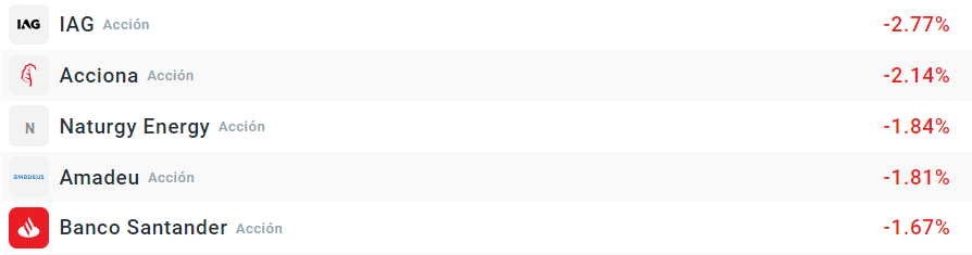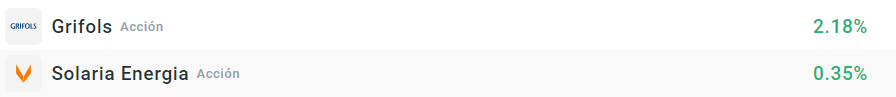 Grifols encabeza las subidas de hoy, aunque ayer por la tarde se publicó que su endeudamiento era unos 1.000 millones superior y su EBITDA menor, según lo requerido por la CNMV. Con Solaria también en verde, las dos son las únicas en positivo hasta el momento en la sesión de hoy. En la parte bajista IAG y Acciona caen con fuerza, aunque todo el selectivo se tiñe de rojo.