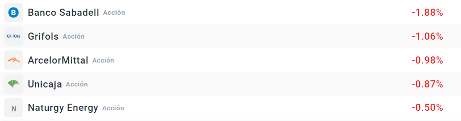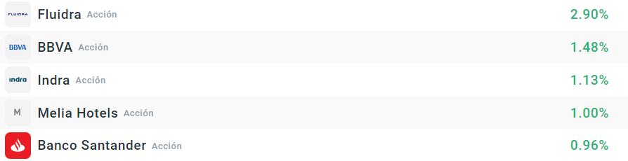 Las subidas están lideradas por Fluidra a falta de un día para que conozcamos sus resultados del primer trimestre de este 2024. BBVA le sigue después de que Sabadell rechazara su oferta de absorción, algo normal en este tipo de movimientos corporativos. Indra sigue con la estela de ayer después de sus grandes resultados y su evolución bursátil sigue la tendencia alcista de sus beneficios. La parte bajista de la tabla está liderara por Sabadell, aunque la caída se ha reducido y no es demasiado pronunciada para todo lo que había subido la entidad a razón de la oferta de BBVA.