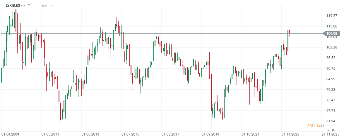 Te mostramos un ejemplo de un ETF que replica el comportamiento del Ibex 35 y que además de encontrarlo en nuestra plataforma puedes incluirlo en tu Plan de Inversión. Puedes encontrar su descripción aquí (LYXIB.ES).