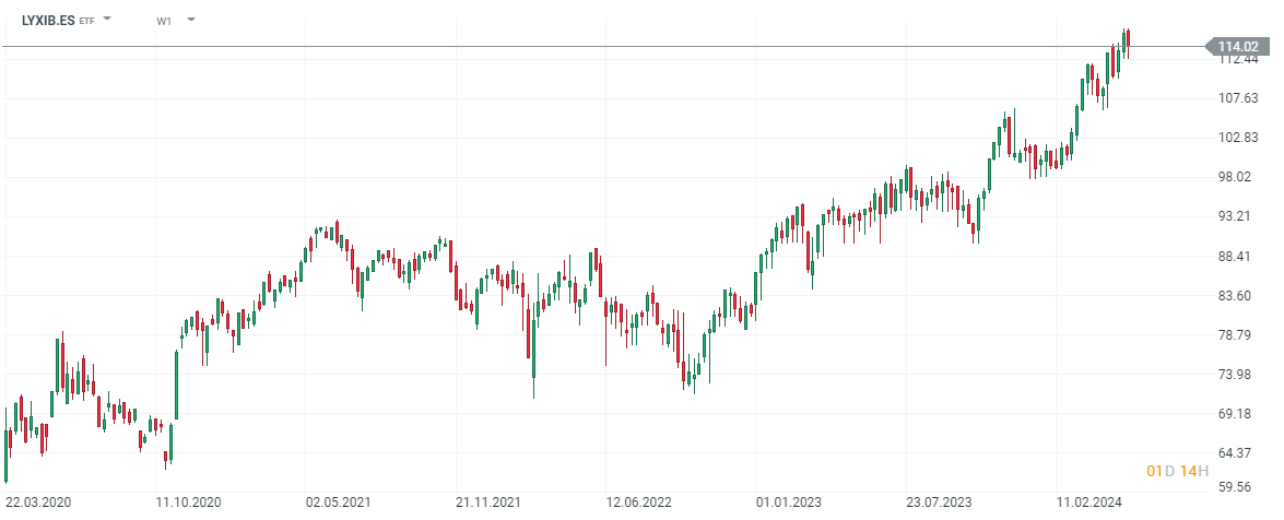 Te mostramos un ejemplo de un ETF que replica el comportamiento del Ibex 35 y que además de encontrarlo en nuestra plataforma puedes incluirlo en tu Plan de Inversión. Puedes encontrar su descripción aquí (LYXIB.ES).