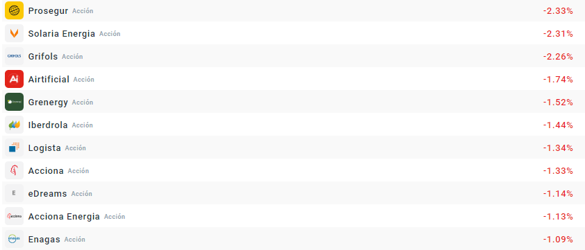 A nivel empresarial, Grifols se anota otra sesión colándose entre las acciones que más caen, en este caso por encima del 2%. Otra de las acciones que lleva un año profundamente bajista es Solaria, que está perdiendo la confianza por parte del mercado y está siendo penalizada por su deuda. Por el lado de las subidas, Meliá continúa la tendencia de ayer y sube cerca de un 1% junto a Aena y Merlin, que copan el top 3 de empresas que más suben en la apertura del Ibex 35.