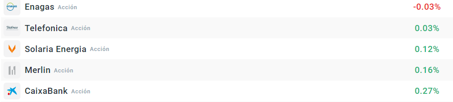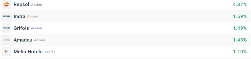 A nivel empresarial Repsol es la compañía que más sube en este inicio de sesión, impulsada por unas cifras en sus resultados superiores a las esperadas por los analistas con un nuevo plan estratégico que incluye una recompra de acciones. Le sigue Indra y Grifols, tras varias sesiones de calma en la primera y de caídas en la segunda. Por la parte baja de la tabla, la sesión ha empezado tan bien que tan solo Enagás cotiza en negativo. Telefónica se cuela en la lista, debido a unos resultados muy flojos.