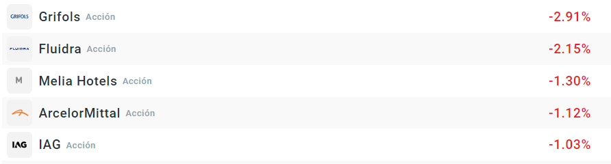 Acciones que más bajan de la bolsa española: