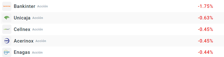 Acciones que más bajan de la bolsa española:
