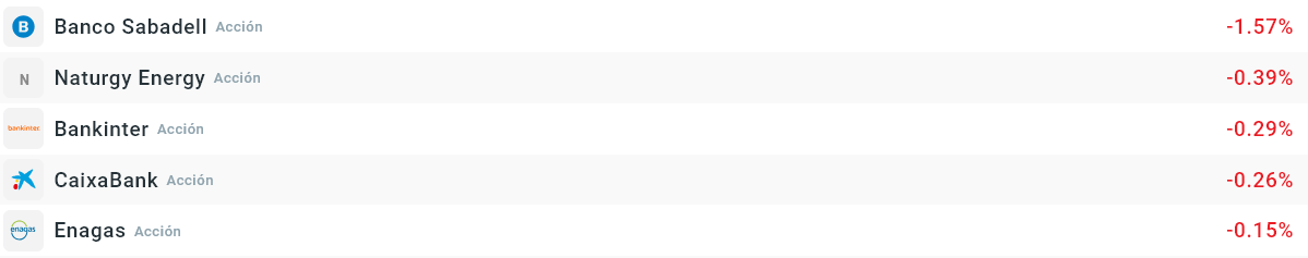Acciones que más bajan de la bolsa española: