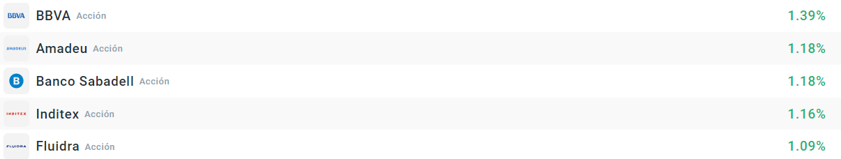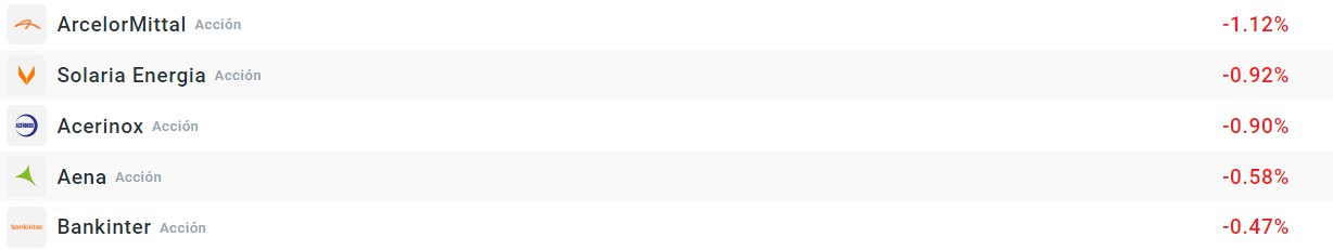 En la parte alcista de la tabla vemos al sector bancario, liderado por BBVA pero seguido por Sabadell. Además, también vemos a Inditex, que hacía bastante tiempo que no ocupaba las primeras posiciones. En el caso de las caídas volvemos a ver a ArcelorMittal y Acerinox, que siguen perjudicados por las expectativas de los precios del acero. Por su parte, Solaria sigue acumulando sesiones en negativo.
