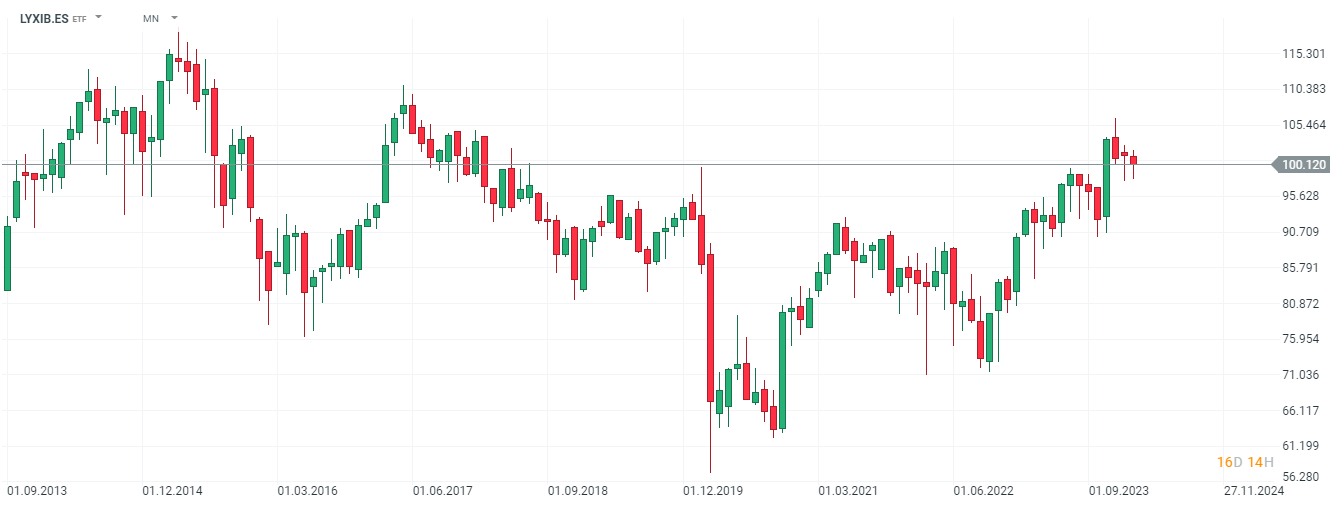 Te mostramos un ejemplo de un ETF que replica el comportamiento del Ibex 35 y que además de encontrarlo en nuestra plataforma puedes incluirlo en tu Plan de Inversión. Puedes encontrar su descripción aquí (LYXIB.ES).