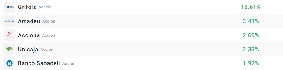 El selectivo español sube con fuerza en la sesión de hoy después de una semana cargada de eventos. Los datos de inflación y los resultados empresariales están impactando de lleno en la cotización del Ibex 35. En el día de ayer veíamos caídas con fuerza, pero el rebote de Grifols lidera la sesión de hoy.