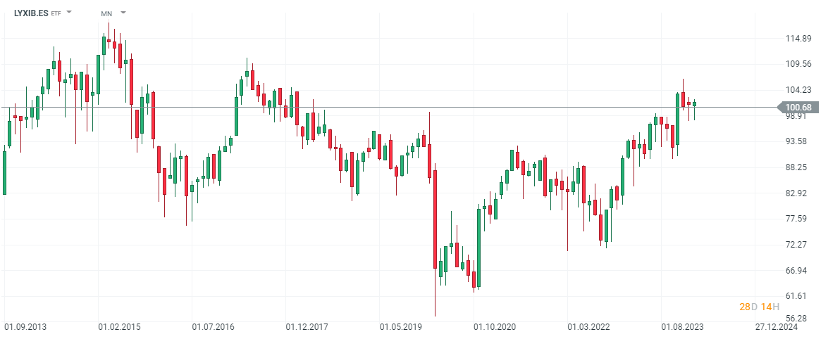Te mostramos un ejemplo de un ETF que replica el comportamiento del Ibex 35 y que además de encontrarlo en nuestra plataforma puedes incluirlo en tu Plan de Inversión. Puedes encontrar su descripción aquí (LYXIB.ES).