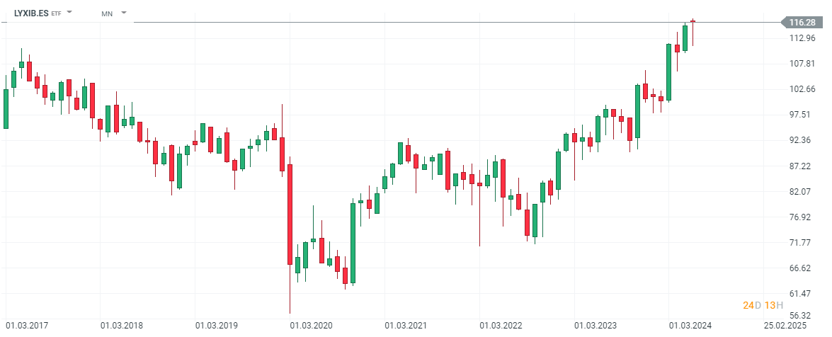 Te mostramos un ejemplo de un ETF que replica el comportamiento del Ibex 35 y que además de encontrarlo en nuestra plataforma puedes incluirlo en tu Plan de Inversión. Puedes encontrar su descripción aquí (LYXIB.ES).