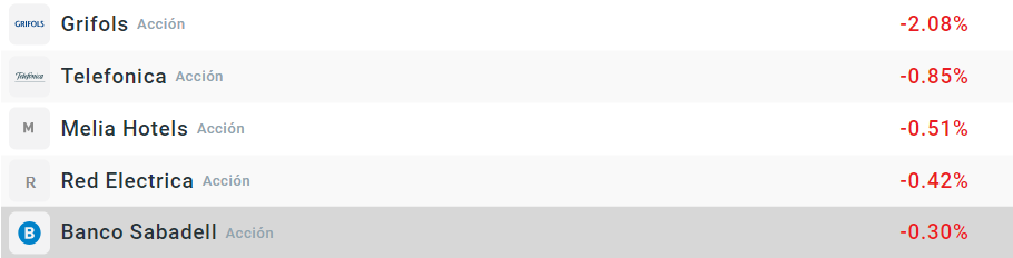 Acciones que más bajan de la bolsa española: