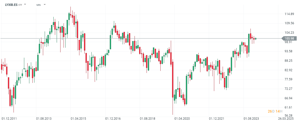 Te mostramos un ejemplo de un ETF que replica el comportamiento del Ibex 35 y que además de encontrarlo en nuestra plataforma puedes incluirlo en tu Plan de Inversión. Puedes encontrar su descripción aquí (LYXIB.ES).