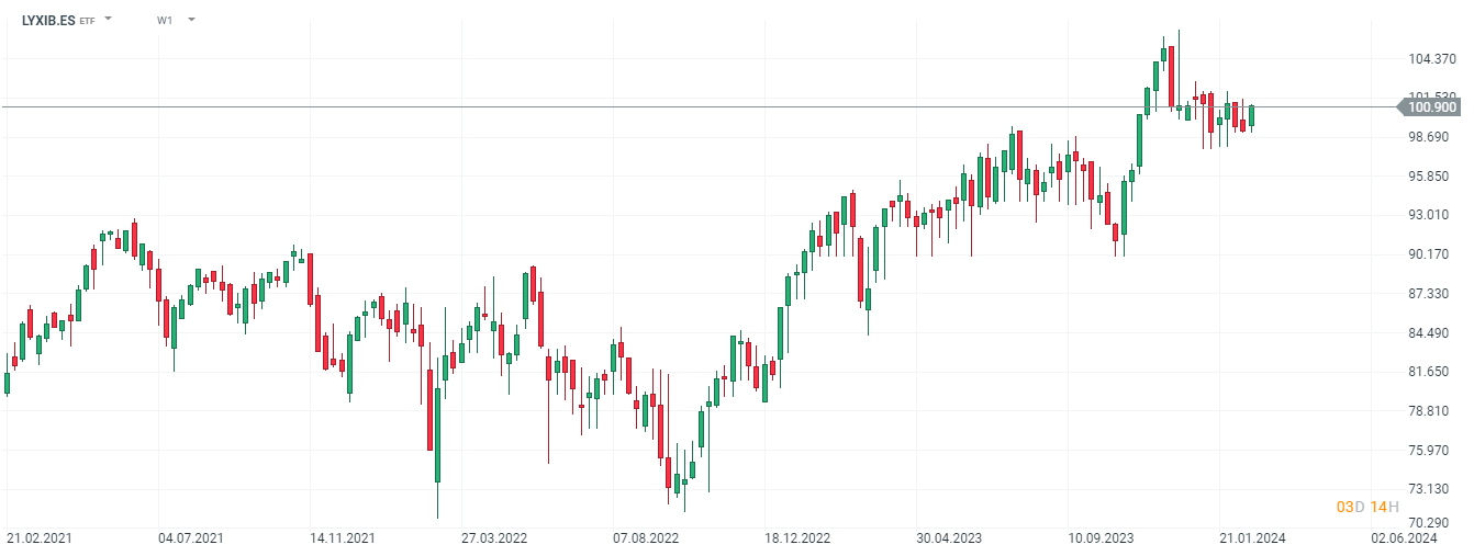 Te mostramos un ejemplo de un ETF que replica el comportamiento del Ibex 35 y que además de encontrarlo en nuestra plataforma puedes incluirlo en tu Plan de Inversión. Puedes encontrar su descripción aquí (LYXIB.ES).