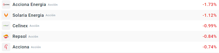 A nivel empresarial, Enagás sube con fuerza a pesar de que ha anunciado un recorte de dividendo y la contiunación de las caídas en los precios del gas. Le sigue Aena, después de que se haya conocido que el tráfico aéreo en China ya está comenzando a crecer con fuerza, lo que si se traduce a tráfico internacional podría impulsar sus cifras. Por la parte bajista, nos encontramos de nuevo a Acciona Energía y Solaria, que acumulan un año muy negativo ante la incertidumbre sobre los precios de la energía.