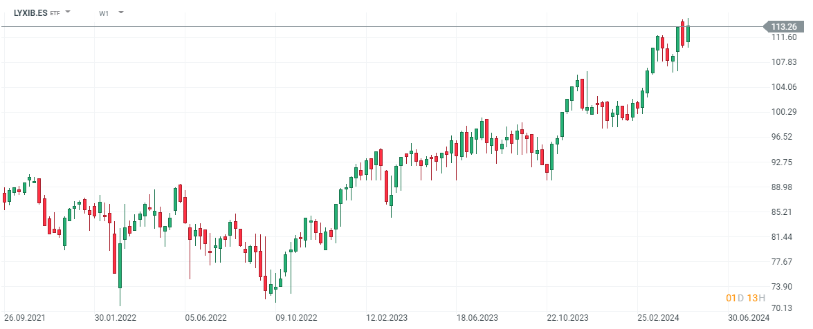 Te mostramos un ejemplo de un ETF que replica el comportamiento del Ibex 35 y que además de encontrarlo en nuestra plataforma puedes incluirlo en tu Plan de Inversión. Puedes encontrar su descripción aquí (LYXIB.ES).