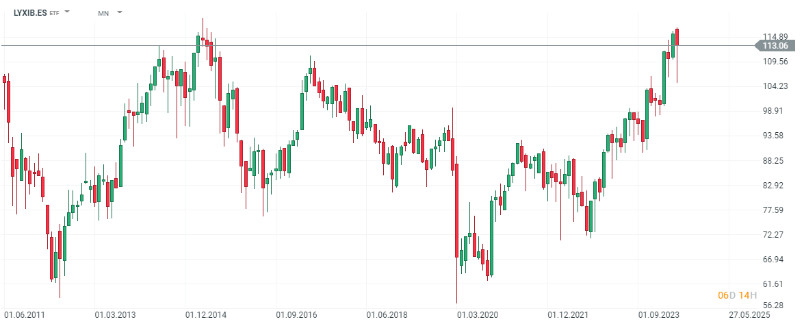 Te mostramos un ejemplo de un ETF que replica el comportamiento del Ibex 35 y que además de encontrarlo en nuestra plataforma puedes incluirlo en tu Plan de Inversión. Puedes encontrar su descripción aquí (LYXIB.ES).