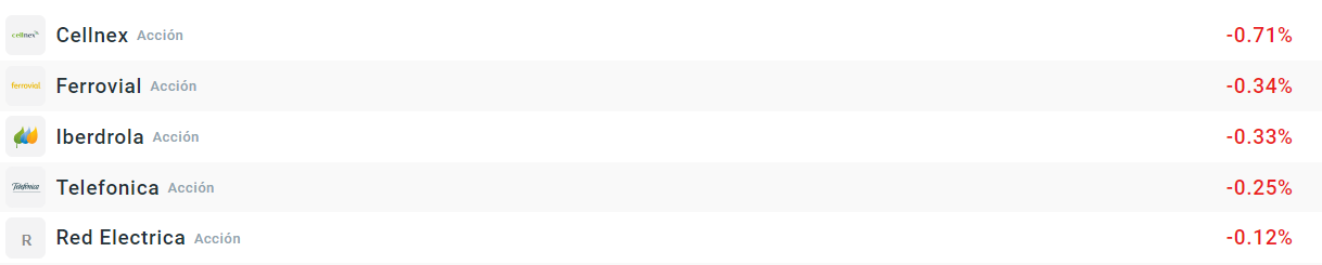 Por la parte bajista esta vez si que vemos poco movimiento, con Cellnex como la más castigada pero nada reseñable. De hecho, poco más de 5 empresas empiezan la sesión con caídas.