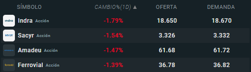 Hoy los principales parqués bursátiles europeos abren con caídas cercanas al medio punto. En España sólo 4 de los 35 valores del IBEX cotizan al alza en lo que va de mañana, de nuevo lideradas por Grifols, que recupera otro 5% ayudada por los rumores de la OPA de exclusión que la familia Grifols junto con el fondo Brookfield quiere acometer sobre la farmacéutica catalana, que continúa con un 33% de caída en bolsa en lo que va de 2024.