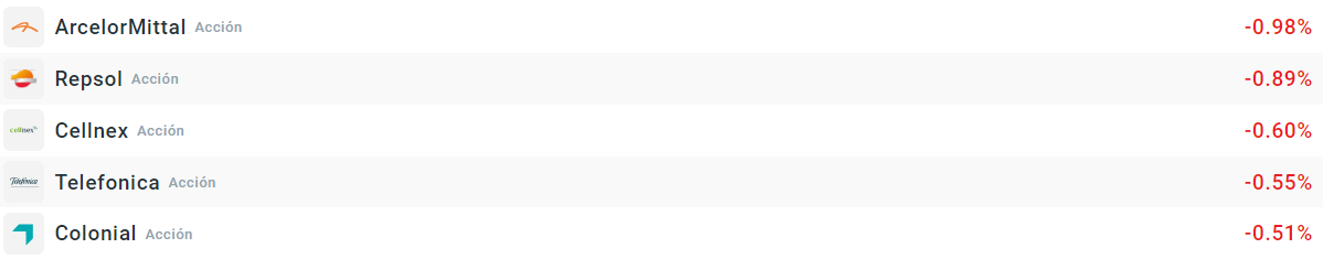 Las caídas las copa ArcelorMittal, que sigue siendo una de las empresas más volátiles de esta segunda mitad ante los cambios de expectativas sobre la demanda de metal. Uno de los países que más influencia está teniendo en el ciclo actual es China, que con la caída de su sector de la construcción está condicionando la demanda global. Repsol también cae, aunque en su caso por los precios del petróleo, a pesar de la compra de acciones de su CEO.