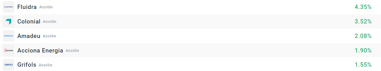 Las subidas están protagonizadas por Fluidra, que no ha presentado resultados, pero si lo ha hecho un competidor. Pentair ha publicado unos sólidos resultados y ha señalado el buen comportamiento del mercado de gama alta, donde opera Fluidra, lo que está dando alas a la acción. Le sigue Colonial, que vuelve a la senda del beneficio y deja atrás las pérdidas del primer semestre del año pasado.