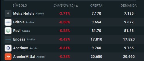 Apertura al alza de un IBEX35 que lucha por recuperar los 11.000 puntos. Nuestro selectivo buscará mantener este buen tono a pesar de Meliá, que cede terreno y cae hasta los 7,2 euros por título. Los inversores venden posiciones de la hotelera mientras siguen descontando las jornadas hasta su salida del principal selectivo español. Tal y como anunció ayer el Comité Asesor Técnico del IBEX en su reunión extraordinaria, Puig sustituirá a Meliá el próximo lunes 22 de julio.
