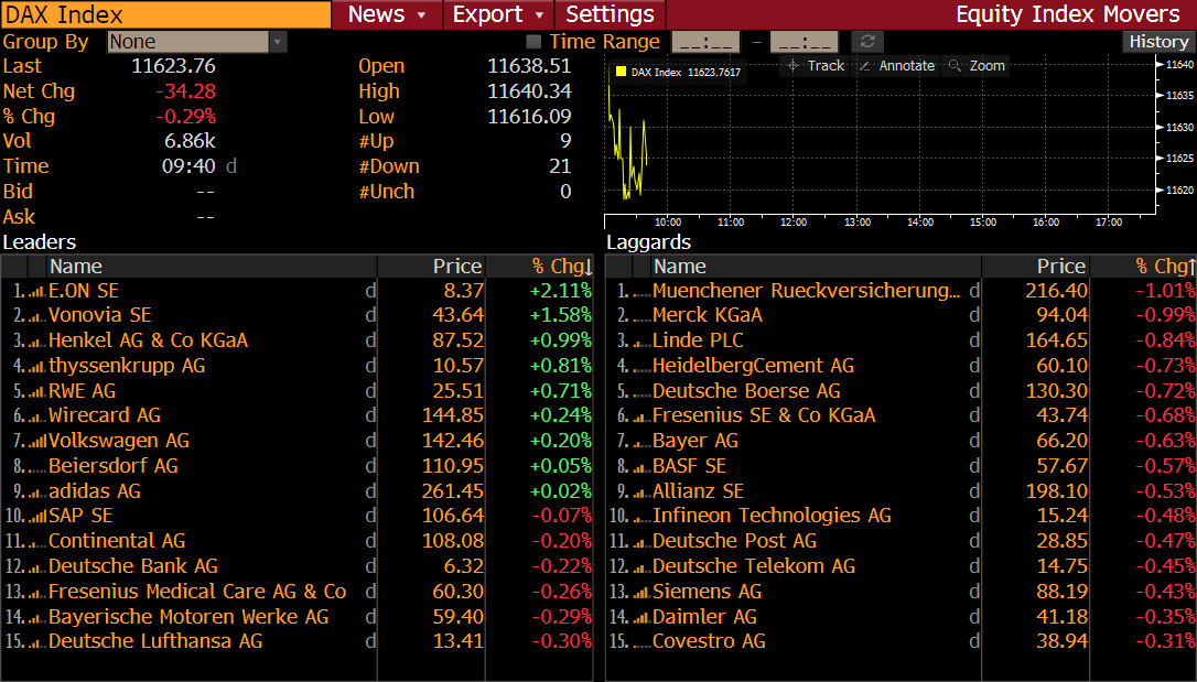 Miembros del DAX a las 8:40 am BST. Fuente: Bloomberg
