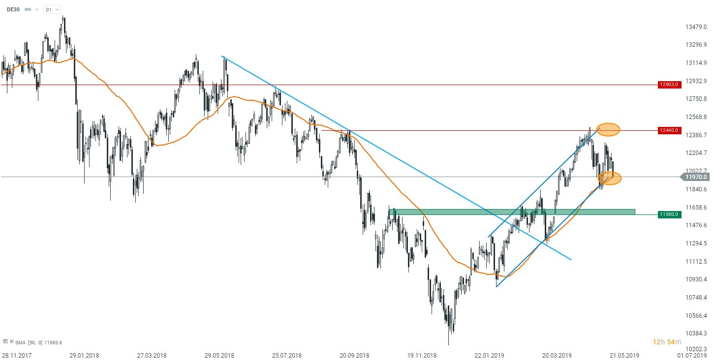 En mayo, tanto los PMIs de manufactura como los de servicios sorprendieron a la baja a pesar de que el nivel ya estaba bastante bajo. Los detalles mostraron que los nuevos pedidos volvieron a contraerse tras un breve repunte al comienzo del segundo trimestre, como escribe Markit. Por su parte, las nuevas ventas de exportación en el sector manufacturero experimentaron un descenso más lento en comparación con el mes de abril. De cara al futuro, no se puede ser muy optimista en cuanto a las expectativas de los fabricantes, ya que la publicación de Markit mostró que sus expectativas de producción en Alemania se han deteriorado este mes hasta un mínimo de 55 meses. Sin embargo, parece que un consumidor alemán es lo suficientemente fuerte como para compensar una caída en el sector manufacturero. Estas conclusiones pueden extraerse de los datos finales del PIB del primer trimestre. Reveló la estructura muy alentadora del crecimiento económico, con el mayor aporte proveniente del consumo privado. Esta categoría fue la que más contribuyó al crecimiento de intertrimestral desde 2011, desafiando la preocupación por el debilitamiento de la demanda interna en la economía más grande de Europa. Además, también tuvimos una contribución positiva de los gastos de inversión y de las exportaciones netas. Por su parte, los inventarios y el consumo público fueron las categorías que restaron del crecimiento trimestral. En general, los datos detallados revelan que la economía alemana se mantuvo sana durante los tres primeros meses, sin embargo, hay que tener en cuenta que el último aumento de las tensiones entre EE.UU. y China puede afectar al ritmo de expansión económica en Europa (aunque el efecto podría ser menos importante hasta que EE.UU. se abstenga de imponer aranceles a los coches europeos).
