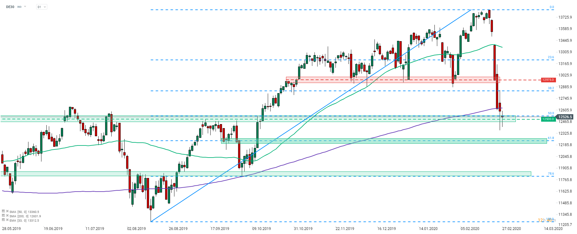 El DE30 vuelve a probar el soporte clave a 12500 pts.