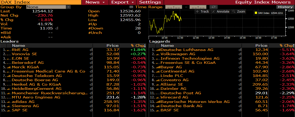 Miembros del DAX a las 10:05 am GMT. Fuente: Bloomberg