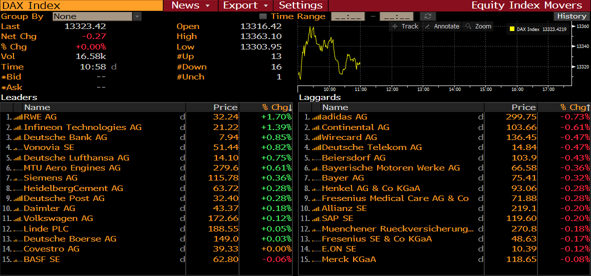 Miembros del DAX a las 9:58 am GMT. Fuente: Bloomberg