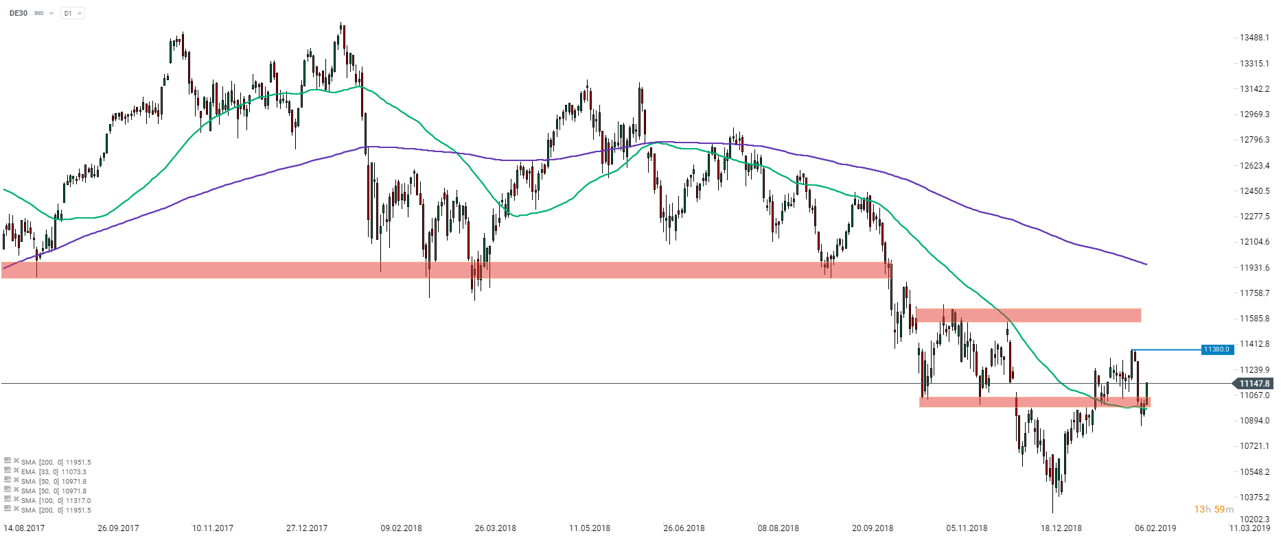 El DE30 se arrastró de nuevo a su reciente rango de comercio de 10990-11650 pts. El último pico local de 11380 pts debe ser tratado como el primer nivel a observar. Una vez que este obstáculo esté fuera del camino uno, un movimiento ascendente hacia el límite superior del rango antes mencionado podría tener lugar. Fuente: xStation5