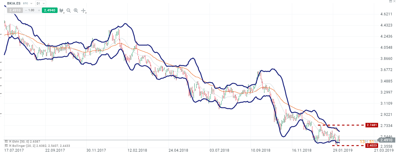 A nievl técnico, Bankia se encuentra en una estructura de minimos crecientes contagiado por el sector financiero ante la gran incertidumbre de la subida de tipos de interés en Europa por parte del BCE, ante tal escenario el mínimo anual marcado entorno a los 2,38€ situan al banco en una buena oportunidad para continuar con la tendencia bajista e intentar superar dicho nivel, apoyado por al media movil de medio plazo que se agudiza con una mayor vertiente a la baja para asi continuar con las posiciones bajistas en Bankia.