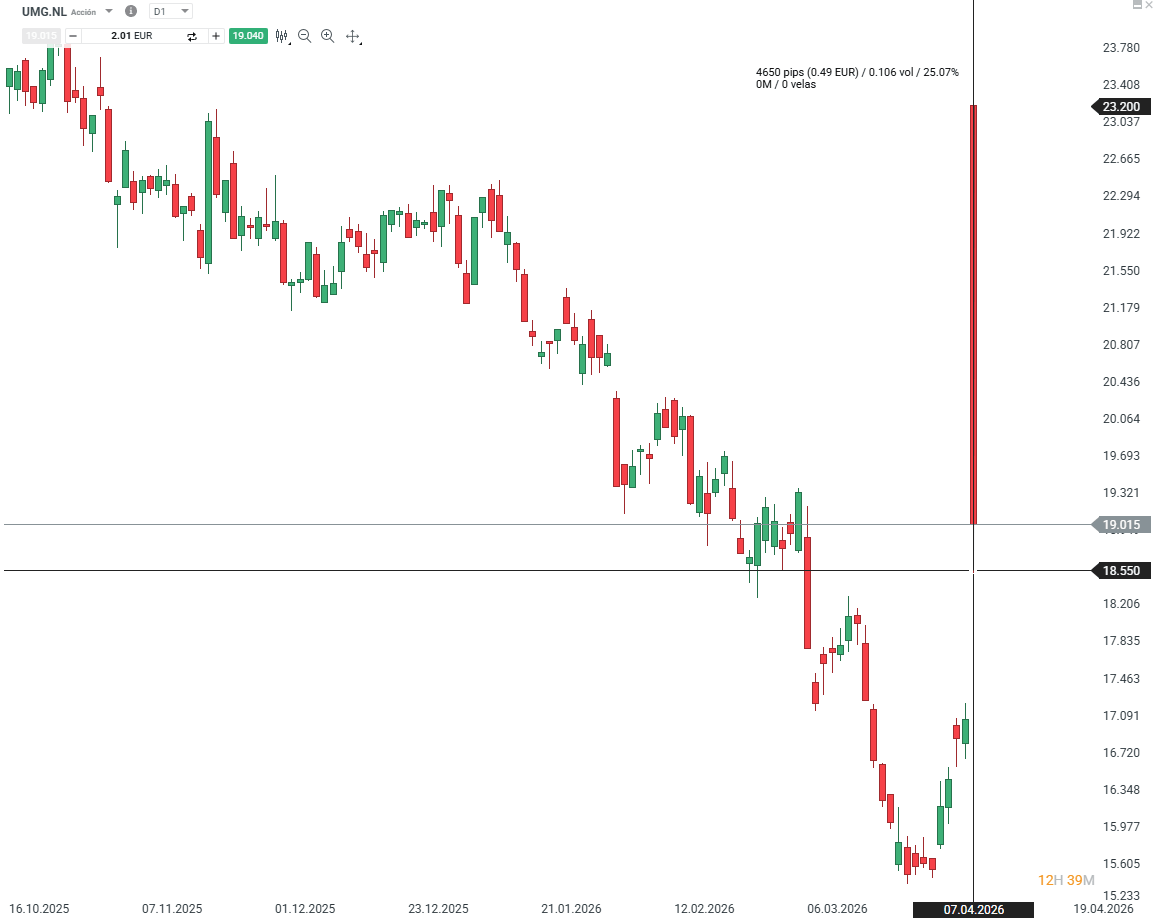Esto explica el rally inicial del 25% y la estabilización posterior en torno al 12–13%. Si la operación avanza, el precio podría seguir acercándose al nivel de negociación objetivo, cerca de los 30 euros.