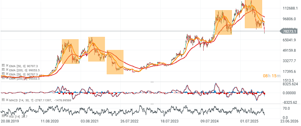Por lo tanto, no cabe duda de que la corrección actual (40% desde el máximo de 126.000 dólares) puede describirse como un mercado bajista técnico de Bitcoin. Si nos guiamos por la historia, Bitcoin podría cotizar en el rango de los 50.000 a los 60.000 dólares en la segunda mitad del año. El mayor riesgo para los mercados sigue siendo la situación en torno a Strategy, que ha acumulado cientos de miles de BTC en los últimos años (precio medio aproximado de 76.000 dólares por BTC), así como la presión vendedora de los ETF al contado estadounidenses, que, prácticamente por primera vez desde su lanzamiento en 2024, muestran actualmente una pérdida media de un pequeño porcentaje. Mientras BTC se mantenga por debajo de los 90.000 dólares, la ventaja seguirá estando del lado de los vendedores, y el ciclo de reducción a la mitad de cuatro años parece estar “materializándose” ante nuestros ojos, con un posible “fondo del mercado bajista” en el cuarto trimestre de 2026.