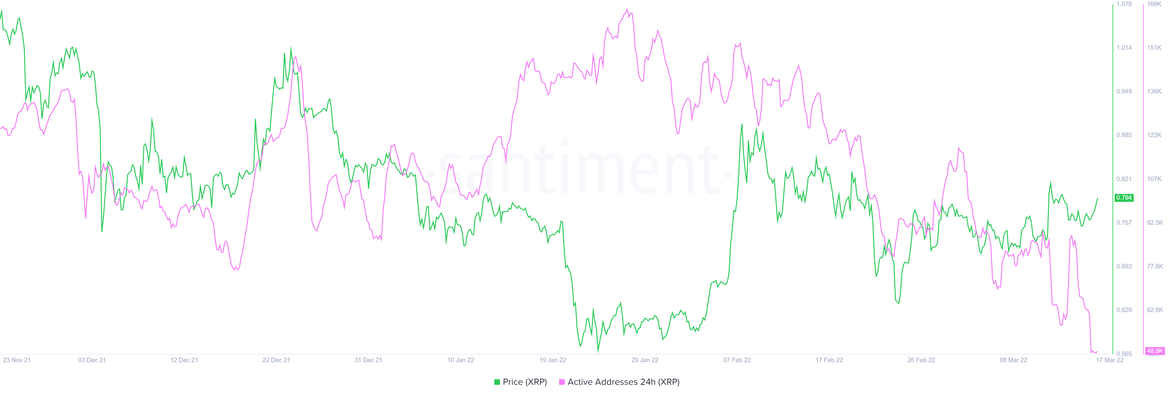 - También la métrica de direcciones activas de 24 horas que mide el interés de los inversores en el proyecto a los niveles de precios actuales se desplomó de 117.000 el 2 de marzo a 49.000 la semana pasada.