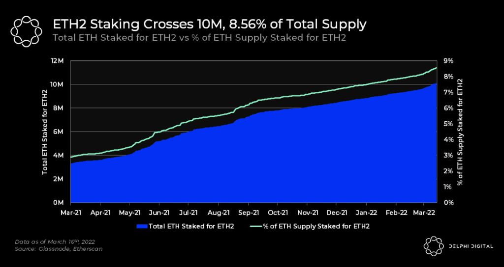 Según los datos de la semana pasada, el 8,56% del suministro circulante de Ethereum estaba bloqueado en el contrato de participación ETH2. Fuente: Glassnode, Etherscan