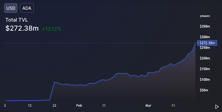 TVL de la red Cardano aumentó considerablemente en marzo. Fuente: FXStreet