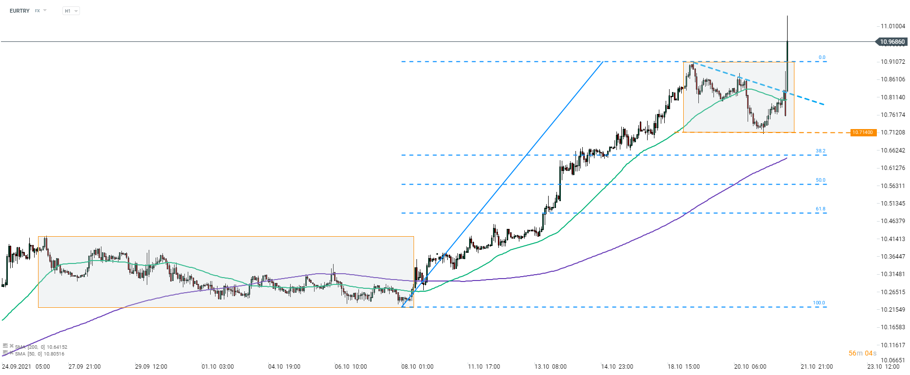 Una mirada al gráfico EURTRY muestra que el par ha roto una racha bajista a corto plazo y ha saltado por encima de la línea de tendencia bajista. El par se movió por encima de las 11,00 por primera vez en la historia. El USDTRY se movió por encima de 9,40.
