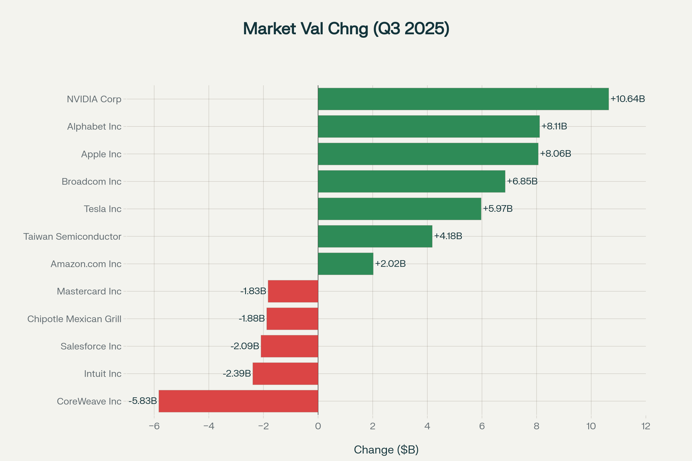 Según datos de casi 909 fondos de cobertura encuestados, el sector tecnológico mantuvo su posición de liderazgo (26% de las carteras) en términos de asignación de capital. Sin embargo, cabe destacar que 145 fondos redujeron sus posiciones en Apple, mientras que solo 118 las aumentaron, y CoreWeave experimentó un desplome de 5.830 millones de dólares, la mayor caída en la exposición de los fondos en todo el mercado en términos de valor de transacción. NVIDIA sigue siendo un gigante con una posición valorada en 56.500 millones de dólares, y el aumento de 10.640 millones de dólares en su valor confirma el fuerte interés en la compañía, dados sus resultados y proyecciones futuras.